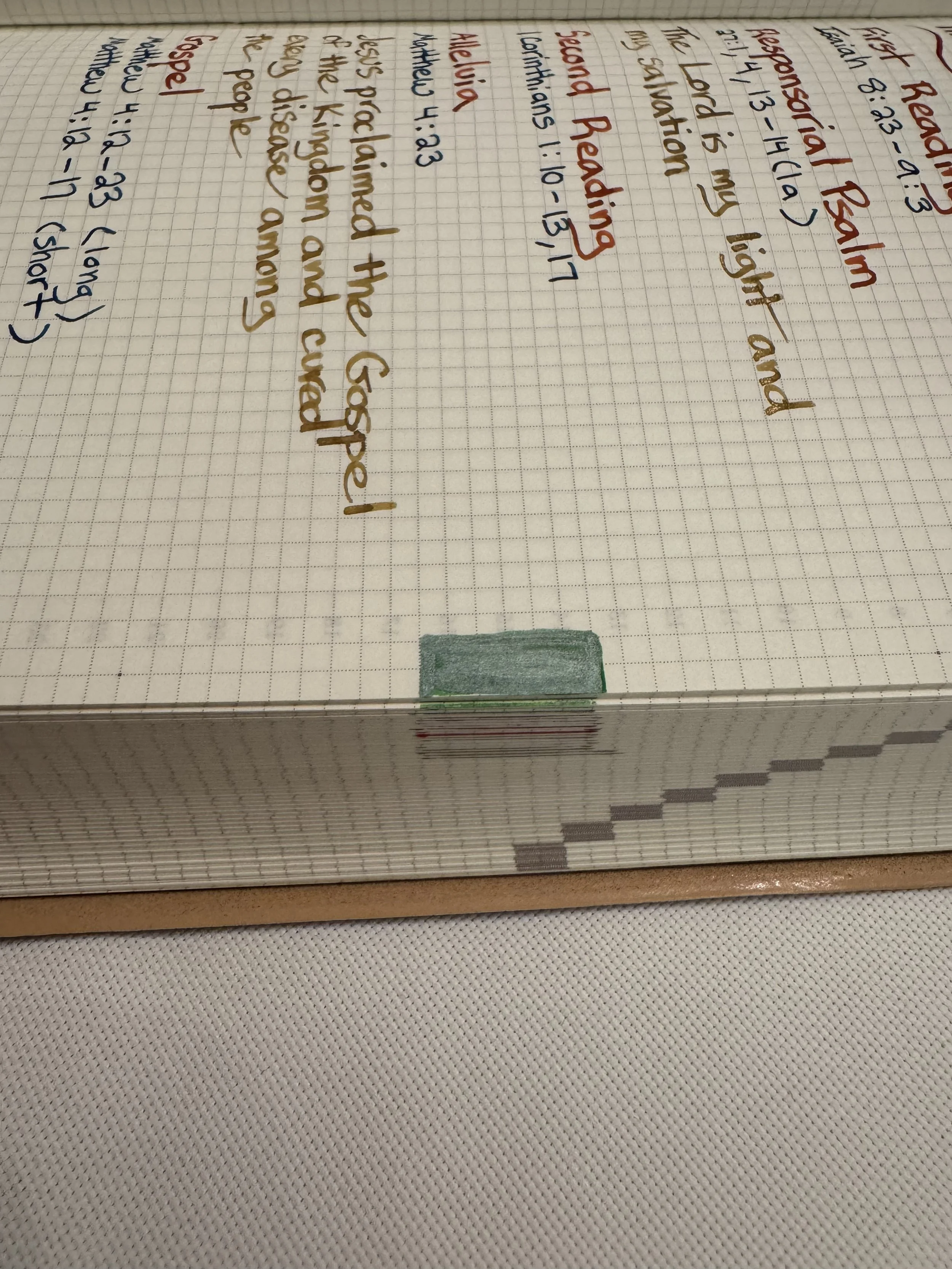 It’s early to get a new planner, but I’m glad I got it now because it gives me time to think about my needs for my planning layouts. The Sunday layouts made me think of my missal-type layouts in the Hobonichi, so I started filling out the Sunday pages with Mass readings. Marking the liturgical season is also important to me, so I took a green marker and marked the right side of the page with the appropriate liturgical color.