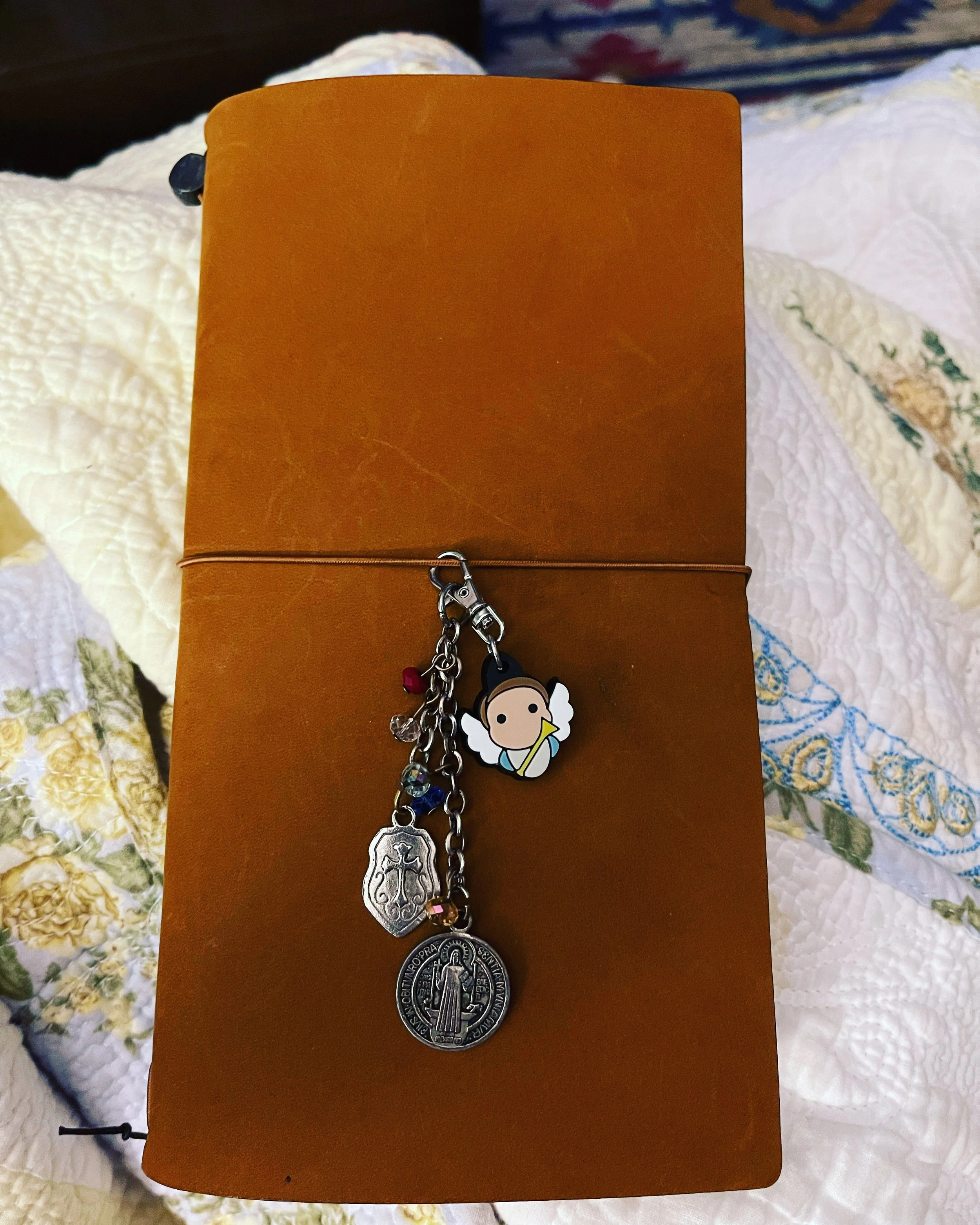 Even though I love the idea of these notebook covers, it took me a while to get comfortable with the slim format. When I first acquired a full-size Traveler’s Notebook, I mostly used it as a junk journal and commonplace book for song lyrics and quotes. It was easy to travel with and jot down lyrics to songs that spoke to me at specific times. I eventually learned how to make my own pocket folders using card stock. This allowed me to store various items such as prayer cards in my Traveler’s Notebook system. This is when it started to click: I could customize this system in a way that reflects my personality in more ways than a simple notebook could. I enjoyed the idea of physically containing objects that are important to me in a way that I haven’t experienced in a long time due to digital curation and storage via computers and smartphones. It was like a neatly organized binder on the first day of school.